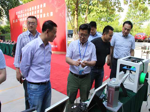 周庆礼院长首先代表学院向莅临本次启动仪式的政府领导、企业领导表示感谢。他指出:创新是进步的灵魂,创意是勇于表现自我想法的快乐,创业是创新的实践性应用。在响应国家“大众创业、万众创新”的号召下,2015年学院采取了一系列创新举措:一是邀请中国航天集团总工程师杨海成教授、西北工业大学工业设计所所长余隋怀教授来校举办“工业4.0与智能制造”的高端学术报告;二是成立“蓝岛创客空间”,打造积极参加南京创客联盟活动,助推“南京创客”发展;三是面向“中国制造2025”,组建“智能制造学院”大力推进“智能制造”校企合作项目,带动企业加深了解智能制造新技术,培养适应网络协同制造、智能机器人、高端成套装备、3D打印等产业一线需求的高素质技术技能型人才;学院初步形成了集创新教育、体验教育、项目学习为一体的创新教育实践平台。他希望广大师生积极参与大赛活动,共同感受创新、创意、创业的魅力,一起“玩”出“放松、惬意、自由”的状态, “玩”出既动脑又动手的实践, “玩”出与他人分享的快乐,“玩”出“世界将因‘玩’而改变”的成果。