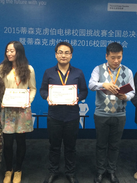 10月23日,由蒂森克虏伯电梯(中国)主办的蒂森克虏伯电梯校园创意挑战赛决赛在上海松江区的公司总部如期举行,来自全国七大赛区的区域优胜团队集聚上海总部争夺全国桂冠。他们从全国227支代表队中脱颖而出,我院机械工程系蓝岛创行队作为华东赛区的优秀选手参加本次决赛答辩。经过一天的激烈角逐,最终以评委得分73.3分,微信投票得分4.9分,总分78.3分获得全国第四名的好成绩。