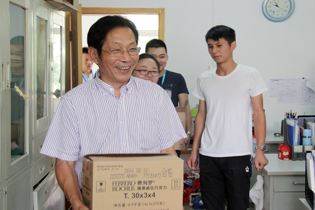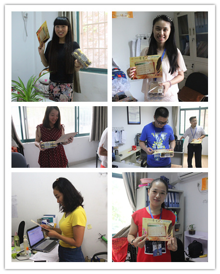 礼物虽轻,情深义重,繁忙的工作中,收到这份惊喜,老师们露出了欣喜的笑容。