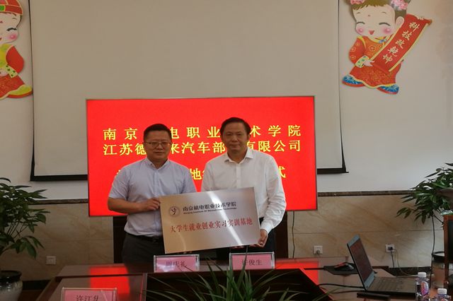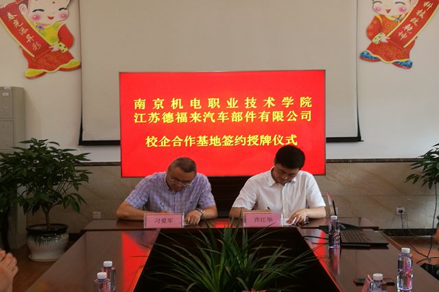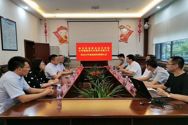随后,学院一行5人在泰兴市高新技术开发区管委会副主任邱明波的带领下分别前往苏德福来汽车部件有限公司、江苏佳佩环保机械设备有限公司进行校企合作专题对接活动。学院领导与企业领导就人才培养、项目合作等校企合作事宜进行了深入的交流,初步达成合作意向。学院分别与两家公司签订《就业创业实习实践基地建设协议》,并向两家公司授予“星空网页版大学生就业创业实习实训基地”铜牌。