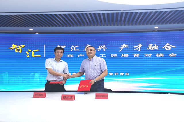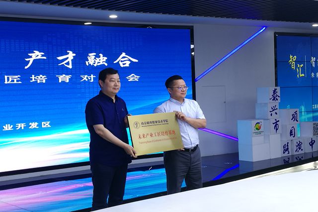 学院副院长刁爱军代表学院与江苏省泰兴高新技术产业开发区签订《产才融合战略合作协议》,学院党委书记、院长周庆礼向江苏省泰兴高新技术产业开发区授予“星空网页版未来产业工匠培育基地”铜牌。