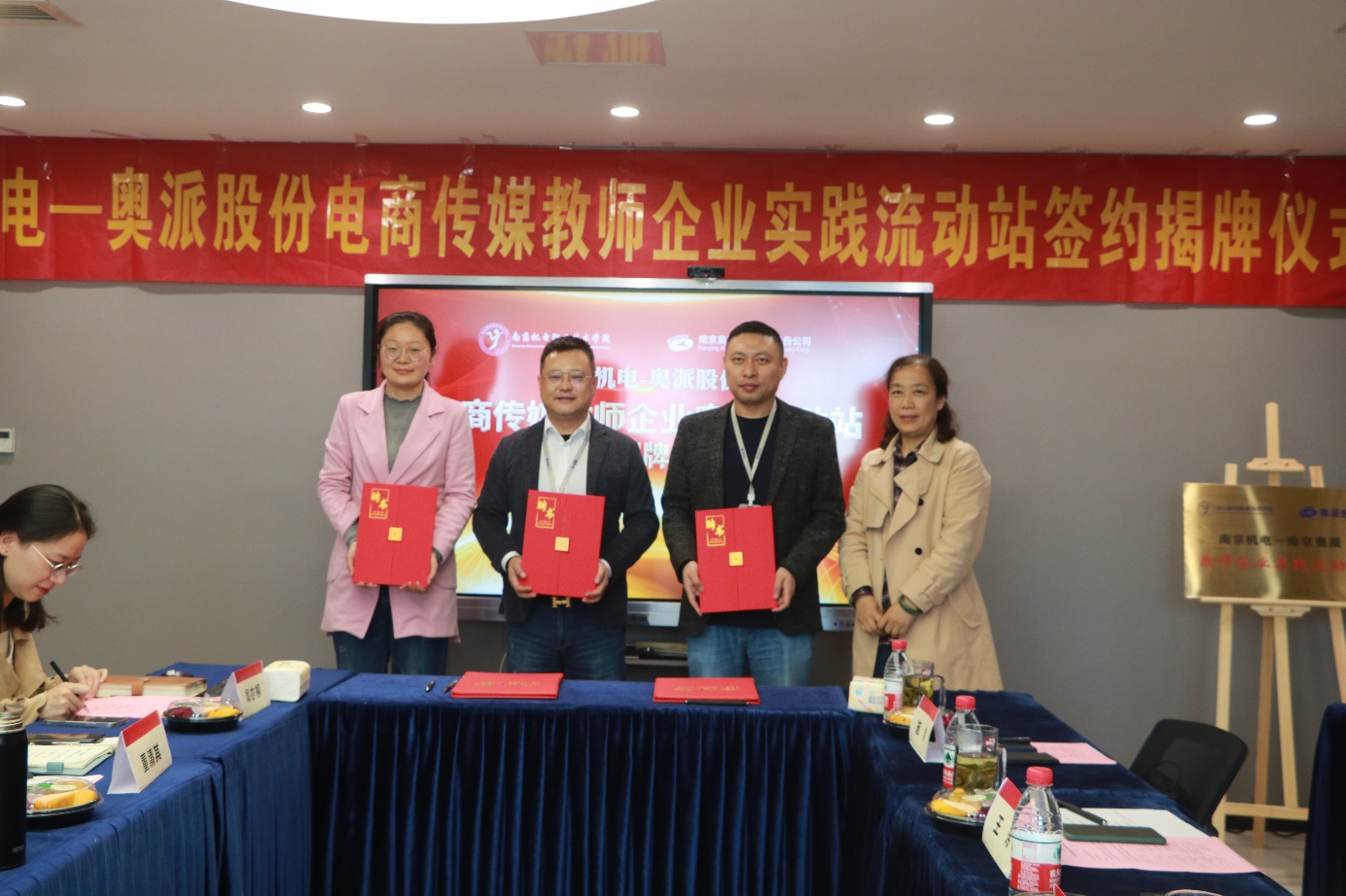 11月10日上午我校党委委员、副院长刁爱军,科研及校企合作处处长李木香、信息工程系主任王玮、信息工程系副主任刘娴及进站教师一行赴南京奥派信息产业股份公司与董事长徐林海、常务副总裁董清其、产品中心总监王波、产品中心副总监刘飒等企业领导共同见证“南京机电-奥派股份电商传媒教师企业实践流动站”正式成立,为着力打造高水平"双师型"队伍、提升我校教师专业实践能力提供了有力的平台保障。