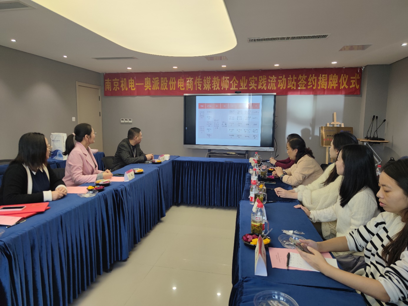 刁爱军介绍了我校坚定不移推动校企合作、产教融合的重要举措和丰硕成果。他强调,教师企业实践流动站有助于促进教师立足行业前沿,贴近生产实际,培养实践能力;感悟企业文化,学习工匠精神,激发创新活力;学习管理经验,创新培养模式,推动教学改革,提高育人实效。“南京机电-奥派股份电商传媒教师企业实践流动站”是我校信息工程系教师与企业导师相互交流的重要平台,将进一步推进产学研成果转化,协同培养更多高质量技术技能人才。