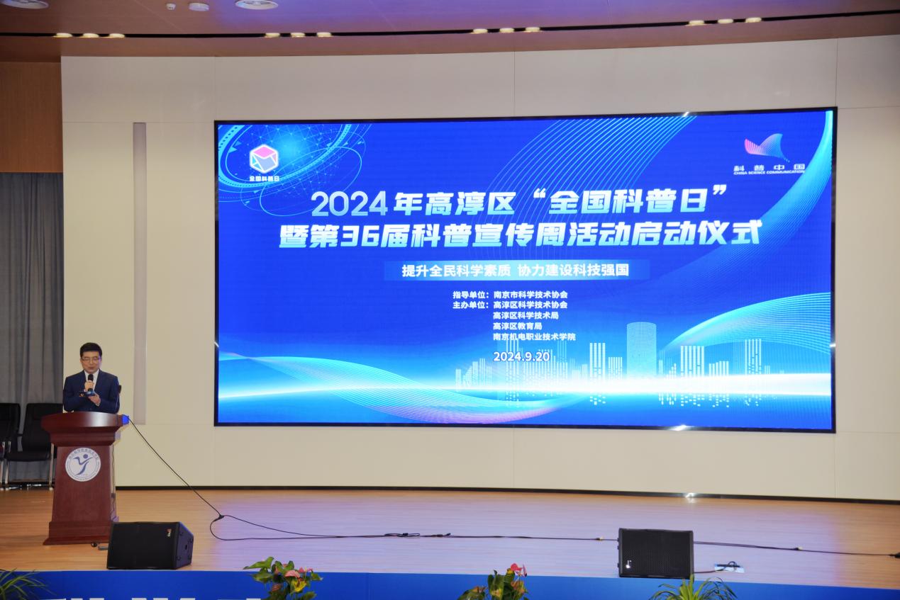 9月20日上午,2024年高淳区“全国科普日”暨高淳区第36届科普宣传周活动启动仪式在星空网页版乐学楼报告厅顺利举办。南京市科学技术协会副主席顾元刚,高淳区委常委、宣传部部长、统战部部长刘敏,玄武区科技局局长、科协主席沈超,东南大学教授任祖平,高淳区科技局局长、科协主席马启顺,区教育局副局长史联盟,科技局副局长李福洋,区科协副主席杨腊斌,南京财经大学红山学院副院长王晓庆,南京固城湖旅游度假区运营管理有限公司总经理吴宝松, 星空网页版党委书记、校长周庆礼,党委委员、副校长刁爱军等领导出席本次活动。高淳区科技教师、南师附中学生及星空网页版师生等400余代表参加本次活动。