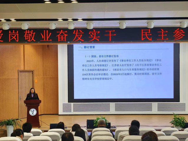 会议聚焦审议《星空网页版教职工考勤及请假管理办法》,由校党委委员、人事处处长夏玲玲进行详细解读。这一管理办法与每一位教职工的日常工作息息相关,关乎学校教学与管理秩序的稳定。在解读过程中,夏玲玲对各项条款的制定背景、目的及具体执行细则进行了深入阐释,让与会代表们对管理办法有了更清晰、全面的认识。