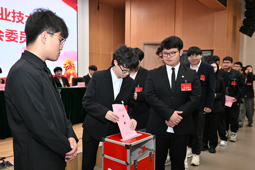 大会在嘹亮的国歌声中拉开帷幕。学校党委书记、校长周庆礼为大会致辞,他肯定了校系学生会组织过去一年的工作成绩,作为学校联系广大同学的桥梁和纽带, 学生会很好地履行了“倾听心声、解决实事、助力成长”的职责 。他表示,在过去一年里,同学们积极参与卫星研制相关项目,发挥专业所长,以实际行动诠释了勇于探索、追求卓越的精神,彰显了南机电学子的专业素养与创新能力;在技能竞赛赛场上,大家刻苦训练、精益求精,凭借扎实的专业技能与顽强的拼搏精神为学校争得荣誉,充分展现了新时代职业院校学生的风采。他对与会代表以及全体南机电青年提出三点希望:一是做“眼里有光”的追梦者,与时代同频;二是做“心中有爱”的追光者,与社会同频成长;三是做“手上有活”的实干家,与产业同频发展。寄语学生会成为学校和学生之间“听得见”的桥梁、“玩得转”的枢纽和“靠得住”的后盾。