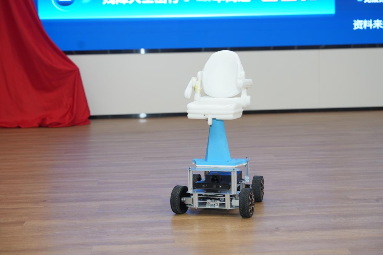 在创新制作组,自动化工程系教师袁芬团队的《虚拟机器人仿真实验平台设计》让学生可以在虚拟环境中反复进行装调和调试练习,全面掌握设备的结构和工作原理,提高实践能力,同时实现在线实训教学,打破时间和空间的限制,满足远程教学的需求。机械工程系学生林志远团队的《旋转升降展台》通过模块化设计,将旋转与升降功能整合,采用电动调节提升稳定性,结合数字化设计与制造技术优化开发流程,打造一款智能旋转升降一体化展台。