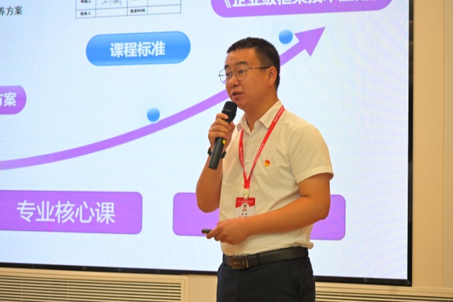 赛后,刁爱军对本次参赛的11位教师的现场表现进行了鞭辟入里的点评,他结合每位教师的教学设计细节,逐一点明亮点与不足,既有对教学技巧改进的具体建议,也有对教学理念升华的高屋建瓴指引。点评过后,他对全体教师的教学提出殷切期盼,他强调专业建设应以产业需求为导向、课程设置应以就业岗位为导向、教学设计应以评价与学情分析为基础、课堂教学应以学生兴趣为切入点,通过项目式学习、情境化教学等多元模式,打造有深度、有温度、有活力的高效课堂,真正实现以生为本的教育理念。