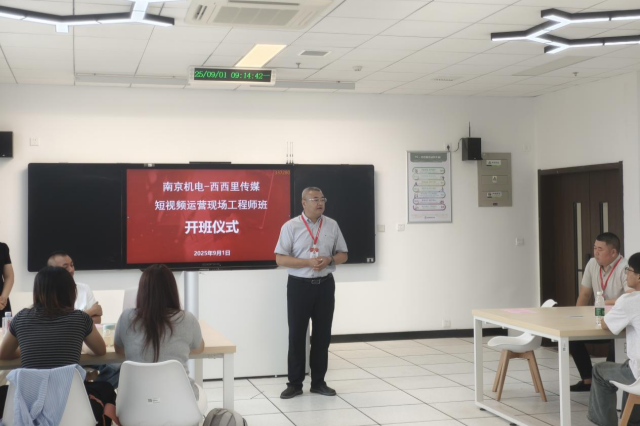 2025年9月1日,星空网页版与南京西西里文化传媒有限公司隆重举行短视频运营现场工程师班开班仪式,标志着双方在产教融合领域开启战略合作新篇章。仪式于我校弘毅楼207教室举行,与会嘉宾包括南京西西里文化传媒有限公司行政总监邢夏飞,运营总监陶钰莹,我校党委委员、副校长刁爱军,人文社科系主任曹安林,系党支部书记李杰,数字媒体技术专业负责人郝逸萱以及学工干事、班级辅导员梁娟娟,仪式由曹安林主持。