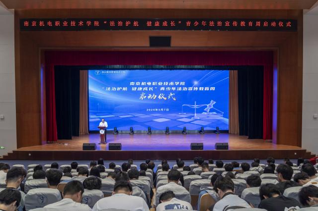 为深入学习贯彻习近平法治思想和习近平总书记关于教育的重要论述,进一步加强青少年法治教育,我校于5月7日在青春剧场举办“法治护航 健康成长”青少年法治宣传教育周启动仪式。高淳区公安分局副书记、副局长周小雨,学校党委副书记、副校长赵学洪及高淳区内保大队、合成作战大队、古柏派出所、学校党委宣传部、学工处、保卫处、五系书记及近700名学生代表参加启动仪式。