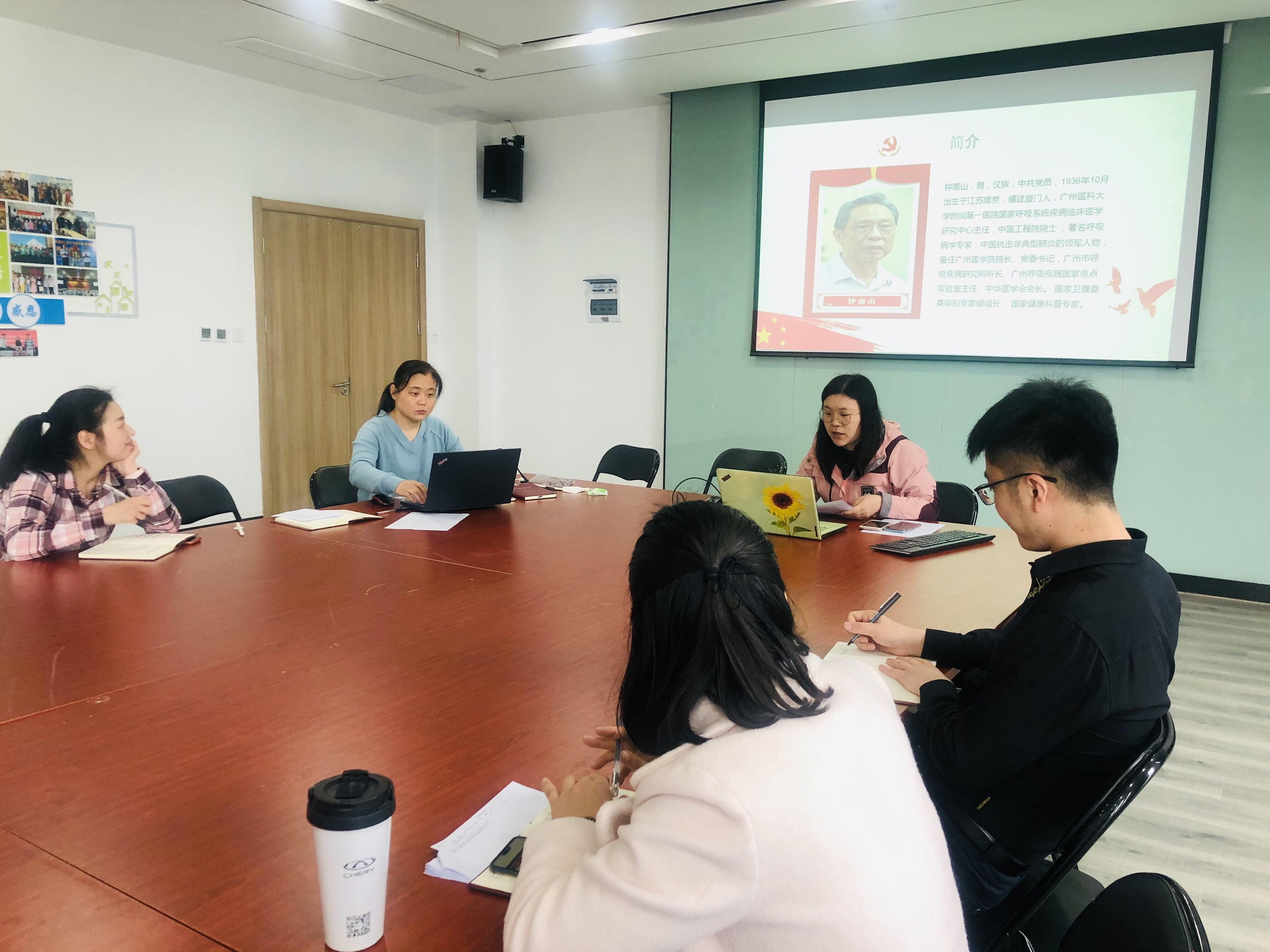 李银露老师带领支部全体党员学习了共和国勋章获得者钟南山院士的事迹,新型冠状病毒来势汹汹,84岁的他一边告诉公众“尽量不要去武汉”,一边自己登上去武汉的高铁,挂帅出征。他多次呼吁大家要注意安全,要隔离,自己却不顾个人的安危投入到这场没有硝烟的战斗中去。在被确诊的感染人数一天比一天增多时,他没有退缩,而是拿出了自己的本领和胆魄担当起保家卫国的重任,用行动表现出“捐躯赴国难、视死忽如归”的英雄气概。《人民日报》微博这样评价他:“84岁的钟南山,有院士的专业,有战士的勇猛,更有国士的担当。一路奔波不知疲倦,满腔责任为国为民,的的确确令人肃然起敬!”