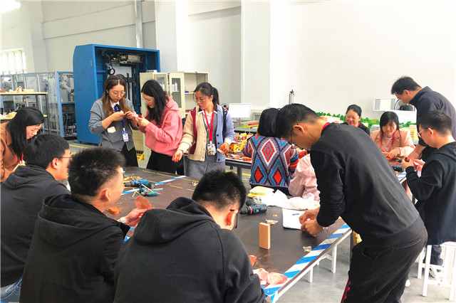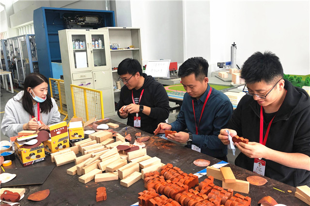 活动中,党员老师们学院蓝岛创客导师的精心指导下动手制作“党员徽章工艺摆台”,经过切割、刻字,钻孔、打磨、上蜡等工序,亲手制作出精美的木质磁力党员徽章摆台。通过参加此次活动,全体党员接受了一次心灵的洗礼,同时也增强了实践动手能力。