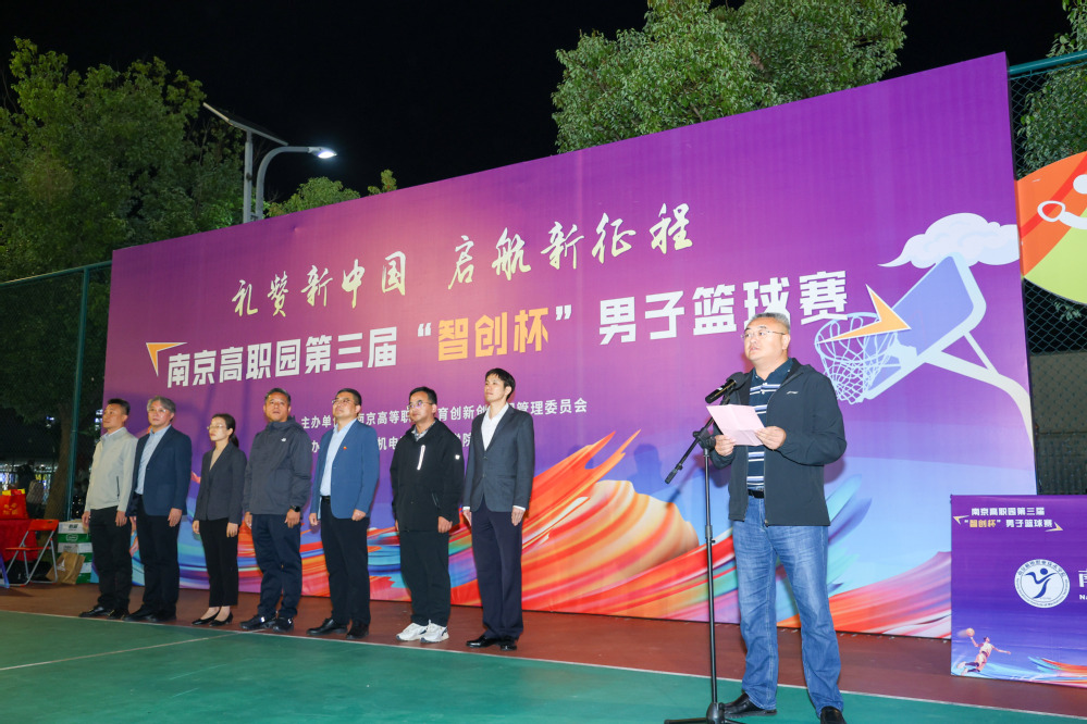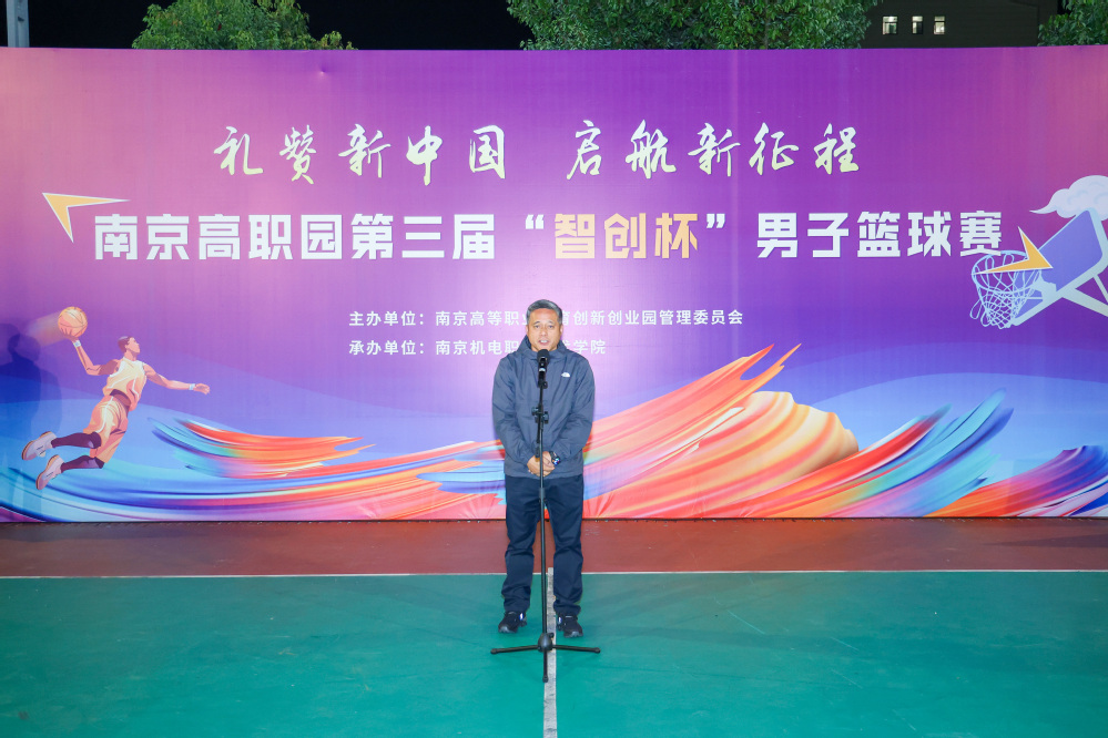 为庆祝新中国成立75周年,深入学习贯彻党的二十届三中全会精神,推动文化事业发展,强化校企地融合,加强园区“智创”党建联盟成员单位交流。10月23日,由南京高等职业教育创新创业园管理委员会主办、星空网页版承办的2024年南京高职园第三届“智创杯”男子篮球赛在我校顺利开幕。开幕式由党委委员、党委工作部副部长高水冕主持。