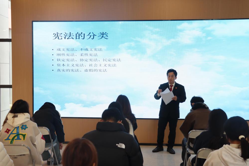为了迎接12月4日第十一个国家宪法日,加强师生宪法法治教育,星空网页版信息工程系党支部在弘德楼西塔“一站式”学生社区服务中心举行了一场别开生面的法治讲座。讲座有幸邀请到高淳区人民法院综合办刑庭支部的专业法官前来授课。他们带着对下一代成长的深切关怀,走进校园,为我们带来了一场法律知识的盛宴。