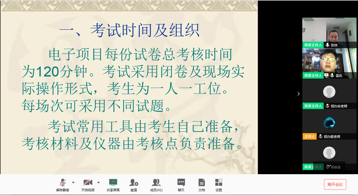 本次讲座,邀请了星空网页版电子工程系张林老师和雷迅老师担任主讲。张林老师围绕“点长车电路的安装与调试”、“正反转电路的安装与调试”、“星三角降压起动电路的安装与调试”等典型任务,对电工技能训练等知识进行了详细分析和讲解。雷迅老师从“考试时间及组织”、“考核内容及权重”、“考试标准”等方面,针对口单招电子电工技能考试标准进行了解读。