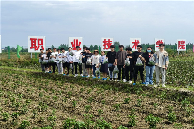 活动一开始,吴伟萍书记亲自下田为现场师生们示范了采摘农作物的技巧,向同学们讲解了农作物各个生长时期的发育特性,并且带学生们认识了一些野生农作物。在场师生们都在认真学习,随后进入实践基地进行实践活动。走进实践基地,放眼望去,一串串、一个个青辣椒挂满枝头、翠绿欲滴。同学们一边小心走路避免踩到农作物,一边仔细挑选采摘成熟的辣椒并将它装袋,田间不时传来一阵阵欢快的笑声。活动结束后,电子工程系无人机211的徐政豪表示田园的劳作让他感受到精神与物质的双重收获,他不仅收获了天然的蔬菜,更体会到农民伯伯的艰辛,在以后的日子里,他一定会做到光盘行动,不浪费粮食、不浪费农民伯伯们的心血。