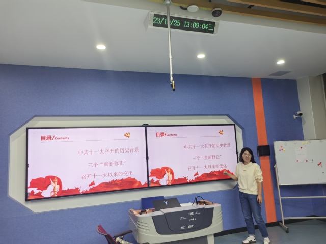 为推动党史学习教育常态化长效化,扎实抓好习近平新时代中国特色社会主义思想主题教育,2023年10月25日中午,电子工程系党支部开展党史专题学习,支部副书记陈雪及全体党员教师参加了此次学习,此次学习由司翠平老师主讲,带领全体成员共同回顾了中共十一大的会议历程。