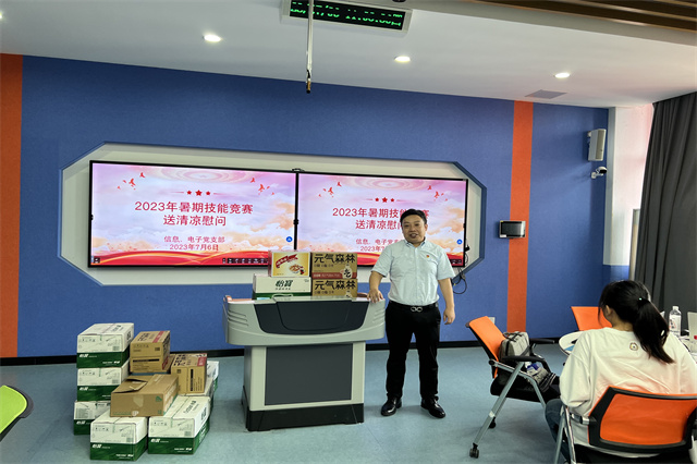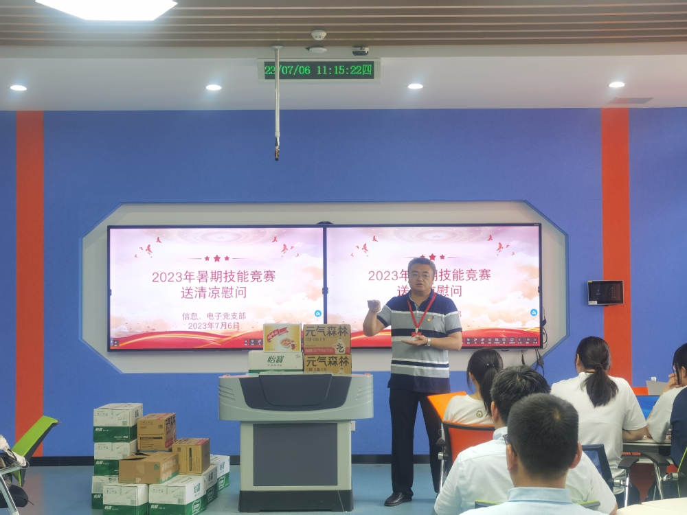 夏至已至,酷暑渐浓。为缓解燥热天气,保障我系暑期技能竞赛队师生完成备赛任务,切实关心关爱师生身心健康与人身安全,将“暖心行动”传递到基层。2023年7月6日电子工程系、信息工程系党支部联合高淳移动党支部,共同为两系暑期技能竞赛团队送清凉慰问。星空网页版党委委员、副院长刁爱军,中国移动通信集团江苏有限公司高淳分公司党支部书记、经理蔡璨,电子工程系、信息系党支部以及高淳移动党支部委员参加活动。