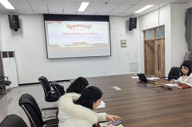 为牢固树立党员干部纪律意识,进一步深化纪律建设,以铁的纪律护航星空网页版高质量发展,2024年1月12日,电子工程系党支部组织专题学习2024年1月1日起实施的《中国共产党纪律处分条例》。本次学习由系党支部副书记陈雪主持,系部全体人员参加。