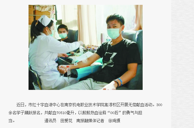 为积极响应南京市献血办、高淳区卫健委的号召,学校工会联合校团委,共同开展“用爱心传递力量,用奉献托起希望”主题献血活动。