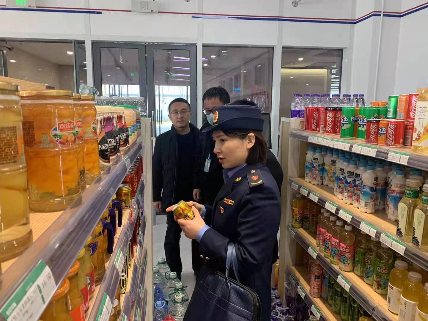2021年3月23日上午,高淳区市场监督局开发区分局张晶局长一行检查组,对星空网页版经营单位食品安全进行检查,后勤处周志刚处长陪同检查。