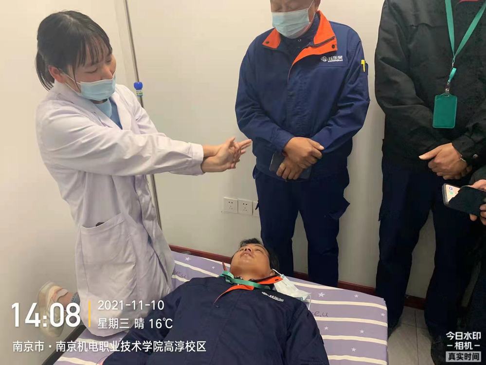 医务室经苏南医生为参与人员进行基本知识讲授,详细讲解了心肺复苏的各项细节,包括判断待救者是否丧失意识、有无自主呼吸、有无脉搏;施救人员如何进行胸外心脏按压、清理口腔异物、开放气道、人工呼吸等,并对操作要领进行了示范。参训人员分批进行实际操作。