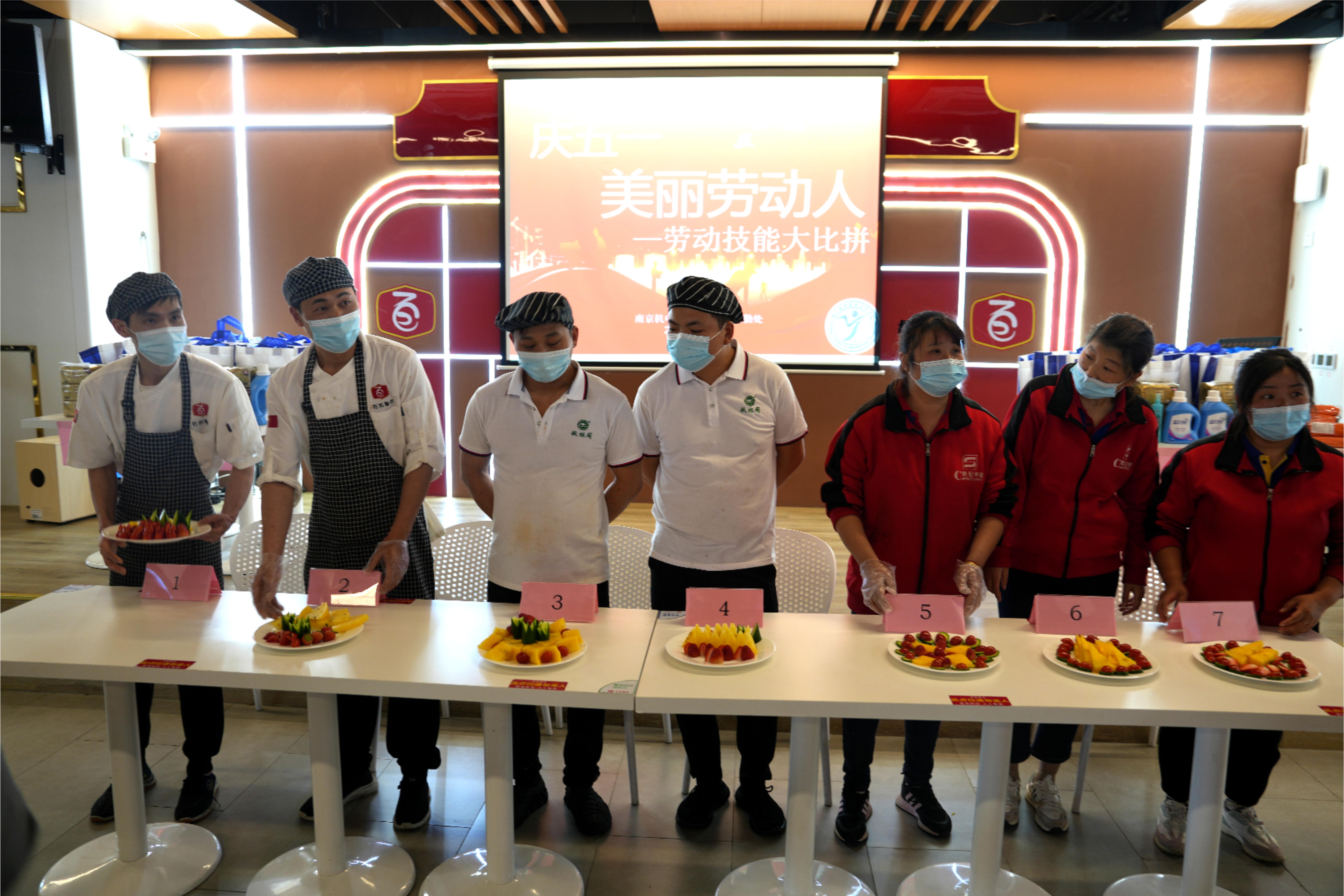 为庆祝“五一”国际劳动节,积极丰富校园文化生活,充分调动员工工作积极性、主动性和创造性,激发职工的爱岗敬业精神,营造“比、学、赶、帮、超”的良好氛围,展现后勤保障人员的日常工作风采,后勤处于4月27日下午举办了“庆五一·美丽劳动人”第二届劳动技能大比拼活动,来自校园食堂、超市、物业、安保等20支队伍,60余名员工参加了本次比赛。