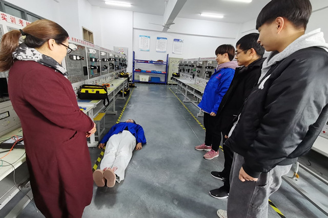 自动化工程系师生于12月9日上午9:30进行了触电急救应急演练,在系部张海红主任、系实训中心林敏主任的指挥下,按照《触电急救演练方案(实训组)》演练方案要求进行了触电急救应急演练,演练时学生进行心脏胸外按压,成功复苏因电击心脏停跳人员,得到师生的一致肯定。