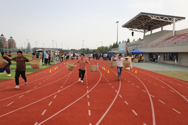 运动会现场气氛热烈,师生们精神饱满、斗志昂扬。此次运动会紧扣劳动主题,运动会项目丰富多样,各有亮点。在“急速搬运工——农田物资接力赛”中,师生们肩挑扁担,跨越重重障碍物,接力运送 “粮食”。比赛过程紧张激烈,大家不仅要比拼速度,还要确保“粮食”少洒落,充分考验了团队成员的抗压协作能力。