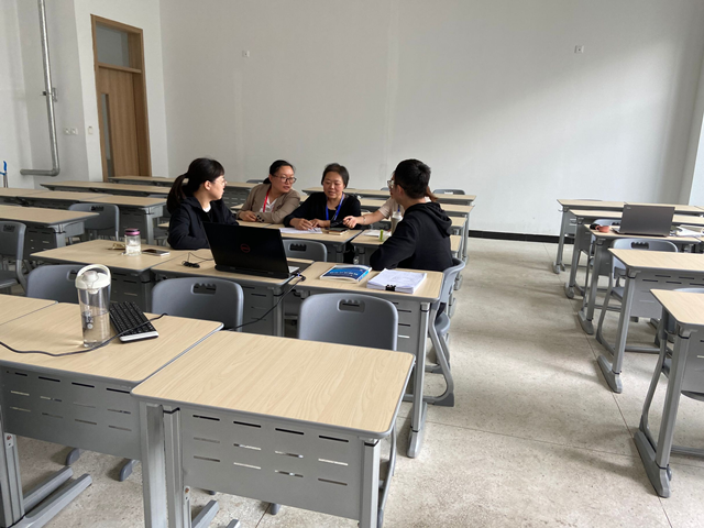 接着,赵一楠老师以平面连杆设计这一知识点为例,利用授课课件向在座的其他教师讲解自己的讲课思路和重难点安排以及如何解决这些重难点的方法。在讲授铰链四杆机构的基本类型和对应条件这一重点时,赵一楠老师充分利用了信息化教学的方法和手段,破解难点。在铰链四杆机构的死点位置这一特性的讲解过程中,充分利用各种自制道具,帮助学生化解理解的难点,获得了在座老师的肯定。