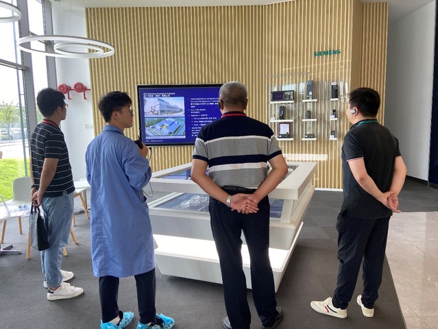 西门子数控(南京)有限公司是知名的数字化控制组件研发生产企业,主要从事数控系统、驱动器、可编程逻辑控制器等产品的研发和制造。在参观交流过程中,工作人员通过现场讲解和播放3D微视频向大家介绍了企业文化、车间环境、产品特色。随后,工作人员带领大家参观了公司的智能化存储仓库和两个数字化生产工厂,通过技术人员的讲解,大家对数控电子元器件的自动化生产的工艺流程、产线效率精益化管理模式、协同生产线的组建等生产技术及管理理念都有了初步的了解,感受智能制造的魅力,深刻体会了数字孪生在工厂建造过程中的应用。