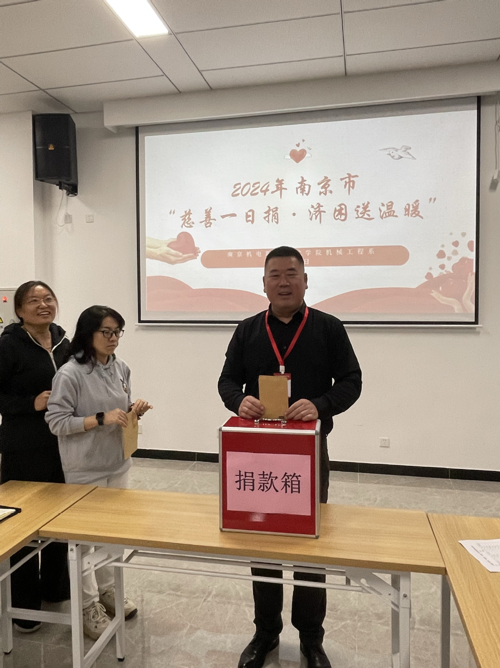 为认真贯彻落实党的二十大精神和习近平总书记关于慈善工作的重要讲话精神,大力弘扬扶贫济困、友爱互助的中华民族传统美德,机械工程系全体教师积极响应新工集团党委关于慈善工作的要求,于10月31日14时在笃行楼401会议室开展“慈善一日捐·济困送温暖”捐款活动,本次活动由党支部副书记李杰主持,机械工程系全体教师参加。