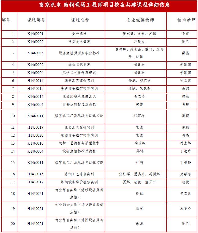 为服务南京机电-南京钢铁点检工现场工程师联合培养项目,选聘一批点检岗位生产技术骨干为企业导师,负责南京机电-南京钢铁点检工现场工程师班学生在培养期的岗位技能培训。