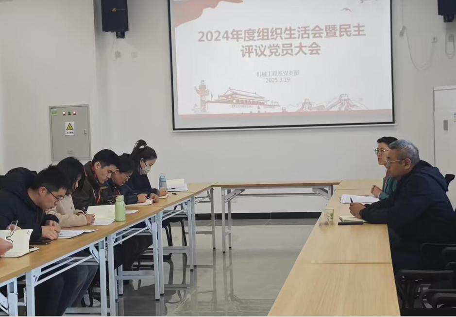 会议伊始,胡枫代表机械工程系党支部向全体党员宣读2024年支部工作总结。总结全面回顾过去一年支部在思想政治建设、组织生活开展、党员队伍管理、党风廉政建设等方面取得的主要成效,并指出工作中存在的一些问题和不足。紧接着,胡枫带头开展自我批评,她坦诚指出,因刚调动到机械工程系,在与党员沟通交流时,应多倾听大家的心声,并诚恳接受全体党员的批评和建议。
