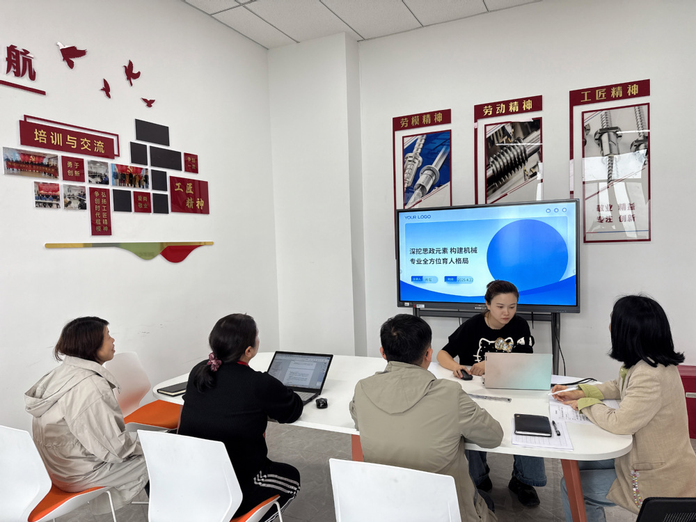 《高等学校课程思政建设指导纲要》中指出全面推进课程思政建设是落实立德树人根本任务的战略举措。2025年4月22日,机械设计与制造教研室在笃行楼李家喜劳模工作室开展以深挖思政元素精绘专业课程思政图构建全方位育人格局为主题的研讨会。