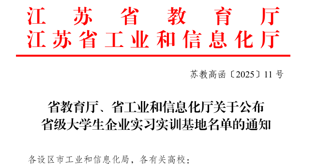 2025年6月7日,江苏省教育厅、江苏省工业和信息化厅公布了省级大学生企业实习实训基地名单。我校机械工程系联合东南大学、南京信息工程大学与南京钢铁股份有限公司成功获批“南钢大学生实习实训基地”。这一成果的取得,标志着我校在推进产教融合、深化校企合作的道路上迈出了坚实且意义重大的一步。