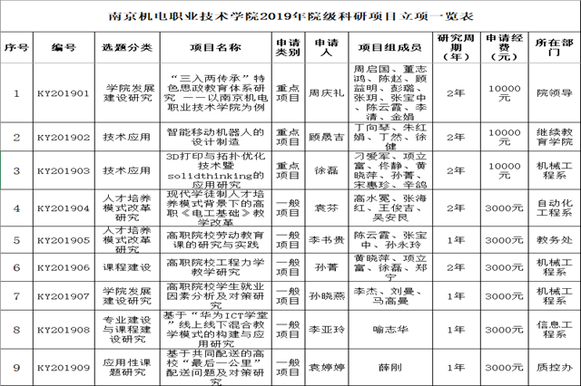 2019年度院级科研项目立项评审结果公示