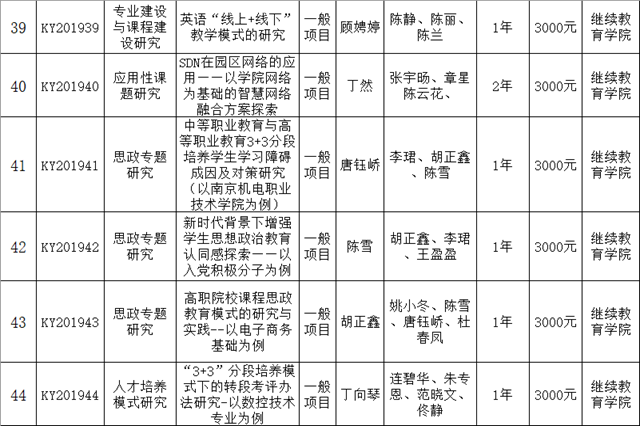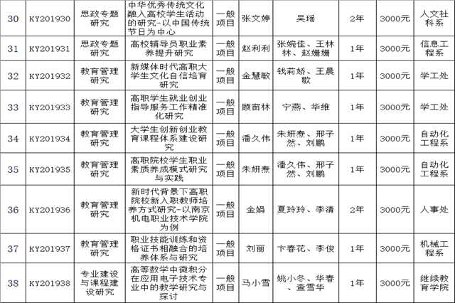 学院2019年度院级科研项目立项评审工作已经结束,共收到教师申报项目44项。经科研及校企合作处形式审查、校内专家小组个别评审、学院学术委员会评审小组会议答辩评审、学术委员会综合评审,现决定对44申报项目给予立项,其中重点项目3项、一般项目41项。现将立项评审结果进行公示,公示期5天(2020年1月11日至16日)。