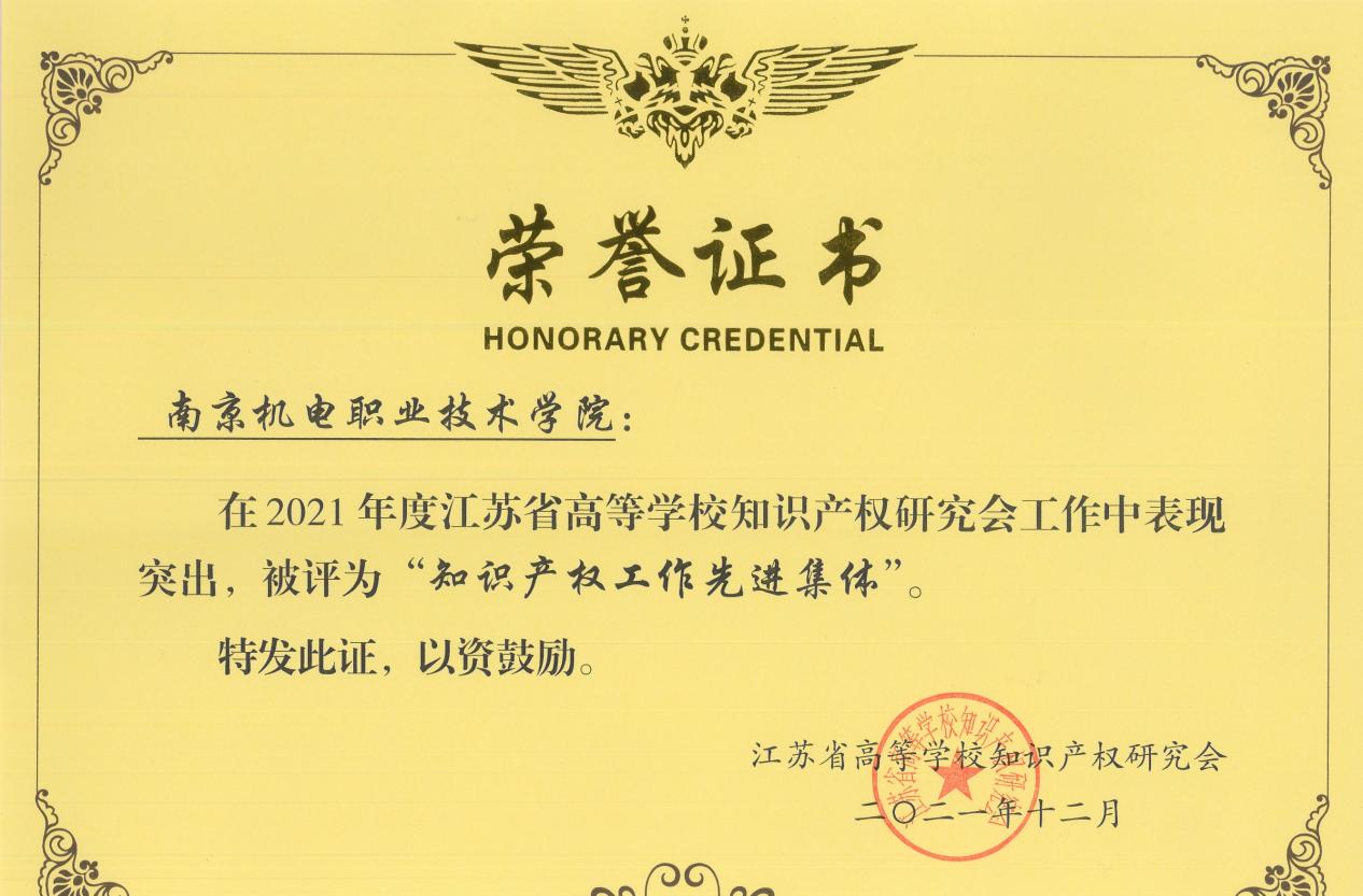 近日,我校被江苏省高等学校知识产权研究会评为2021 年度知识产权工作先进集体。