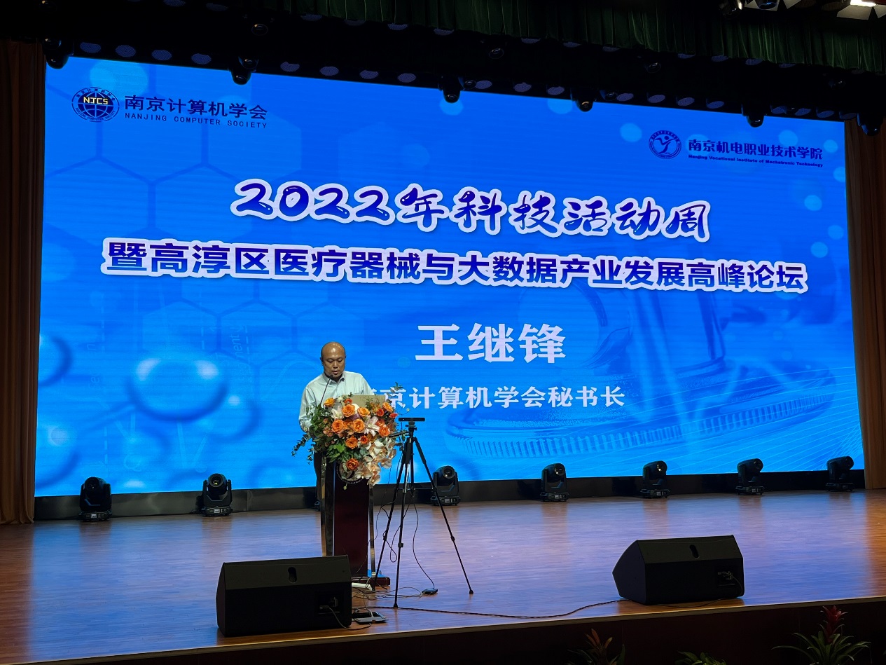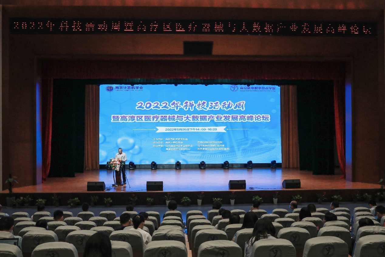 本次活动由南京市科学技术协会举办,南京计算机学会和星空网页版承办,江苏省生物医学工程学会、江苏医疗器械大数据中心、高淳区医药大数据中心和南京高等职业教育创新创业园协办。江苏省科学技术协会党组成员、副主席李千目,南京市科学技术协会一级调研员虞永才,高淳区人民政府副区长刘敏,南京高等职业教育创新创业园副主任孙爱国,高淳区科学技术协会副主席杨腊斌,江苏省生物医学工程学会常务副理事长王俊、秘书长吕华,南京计算机学会秘书长王继锋,星空网页版党委副书记、副院长陈赵等领导出席活动。高淳区相关部门以及高职园、相关部门负责人、行业协会、机电学院师生代表共350人听取论坛报告。本次活动采用线下会议与视频直播相结合的形式,活动由星空网页版党委委员、副院长刁爱军主持。