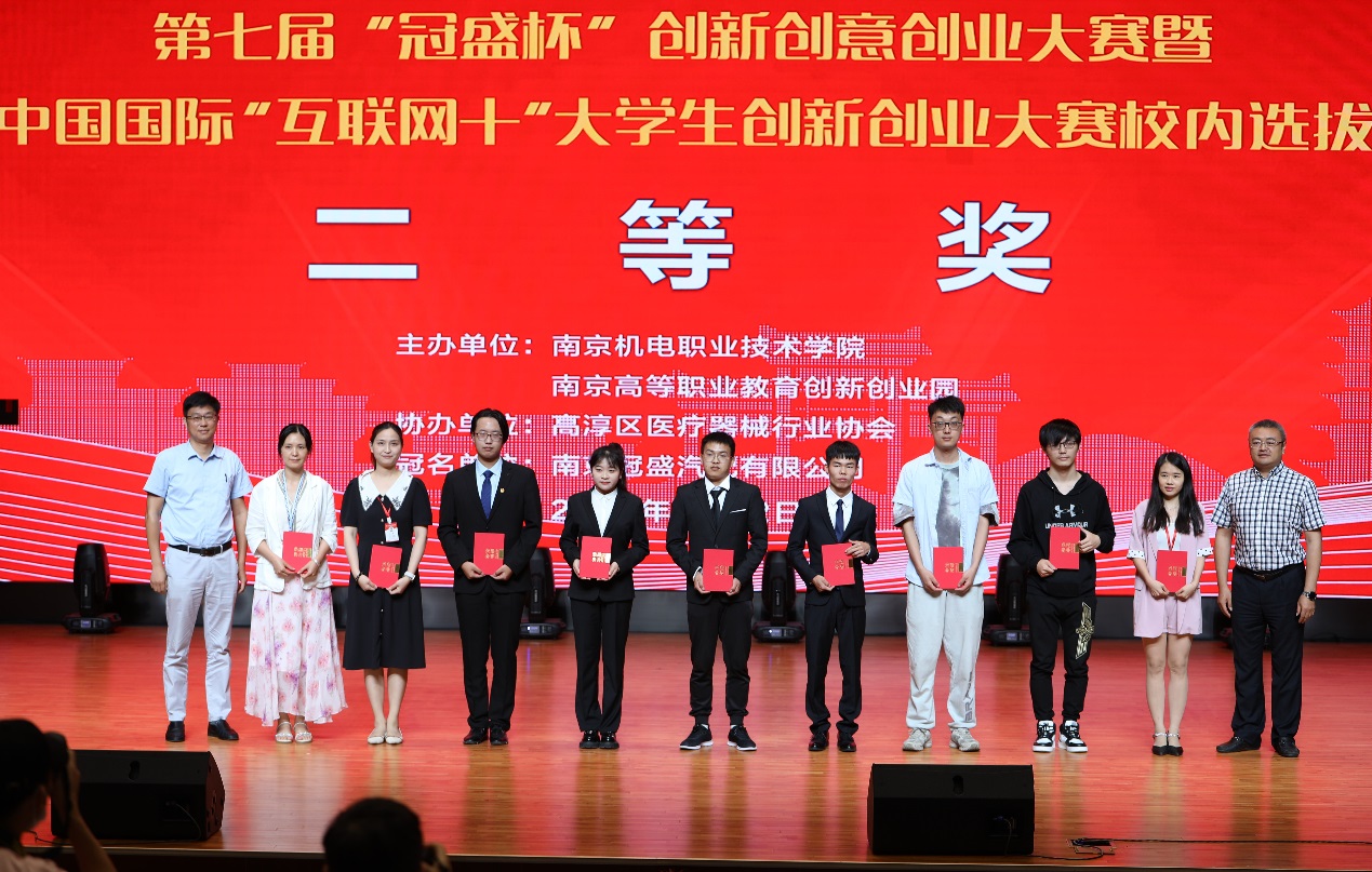 在颁奖仪式上,学校副院长刁爱军做总结发言。刁爱军带领观众回顾了整段赛程, “三创大赛”对学校人才培养,师生跨学科交流,综合能力提升等方面发挥着积极的推动作用。他希望学校师生在新时代创新创意创业浪潮中劈波斩浪、扬帆奋进,早日成为“创新达人”“创意精英”“创业大咖”。南京高职园主任汪春荣宣读了本届大赛现场决赛的评审结果。最终,《桌面级辅助机械臂》等5项作品获一等奖,《 “防患于未然”的无人机》《画化高淳话》等10项作品获二等奖,《 宿舍平移床上电脑桌》《文锦--校园文创》等15项作品获三等奖,《“凉山好汉”乡村支教梦”》等4项作品获单项奖。