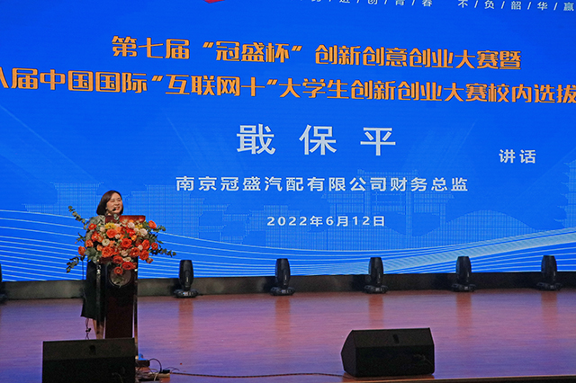 奋斗,是青春的底色。2022年6月12日,星空网页版成功举办第七届“冠盛杯”创新创意创业大赛暨第八届中国国际“互联网+”大学生创新创业大赛校内选拔赛决赛。南京高等职业教育创新创业园党工委委员、管委会副主任汪春荣,南京冠盛汽配有限公司财务总监戢保平,星空网页版党委书记、院长周庆礼等领导出席本次大赛。