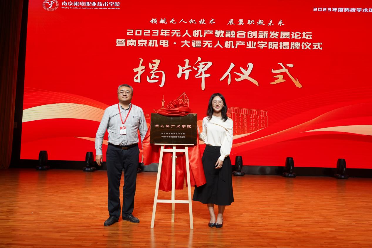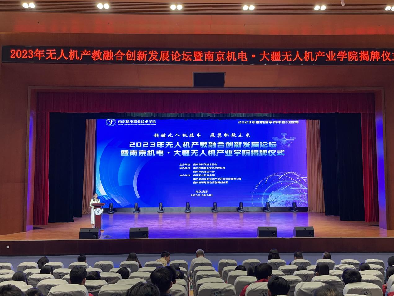 2023年10月24日下午,2023年度科技学术年会分会场——无人机产教融合创新发展论坛暨南京机电•大疆无人机产业学院揭牌仪式在学校青春剧场顺利举行。本次活动由南京市科学技术协会主办,由星空网页版科协、南京市高淳区科协承办,由高淳职业教育集团、南京高淳高新技术产业开发区管理办公室、南京高等职业教育创新创业园等共同协办。南京航空航天大学研究生院副院长郑祥明,南京航空航天大学飞行器设计专业工学博士、教授唐正飞,高淳区科学技术协会副主席杨腊斌,南京高等职业教育创新创业园党工委委员、副主任孙爱国,深圳市大疆创新科技有限公司华东区代表滕菲,南京弘谷信息科技有限公司总经理赵华君,南京弘谷信息科技有限公司副总经理顾启凌,学校党委委员、副校长刁爱军,党委委员、纪委书记、工会主席姜振宇等领导出席本次活动。本次活动由学校科研及校企合作处处长李木香主持,电子工程系全体教师及学生代表,高淳职业教育集团理事单位江苏省高淳中等专业学校和高淳第一中学的师生代表参加了本次活动。