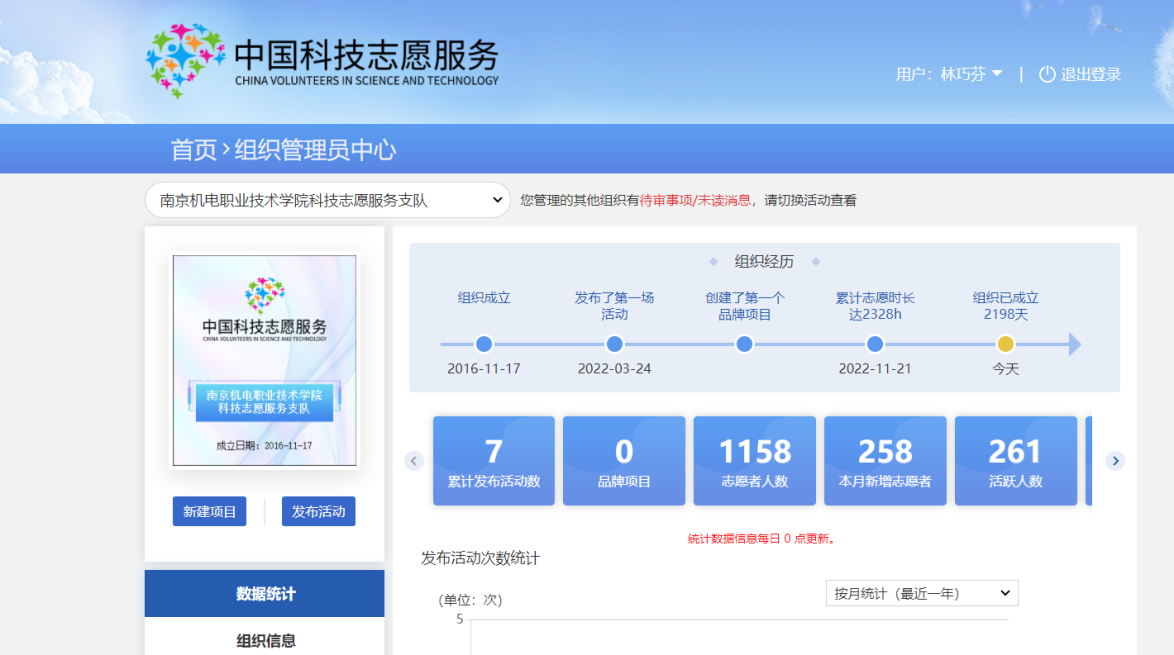 强化品牌建设,开展多样化科技志愿服务。 组织开展首颗中国高职科普卫星“南京号”暨中国青少年科普卫星(八一08星)工程项目、无人机产教融合创新发展论坛、“讲理想、比贡献”创新活动、创新创意创业大赛、科技服务进企业、知识产权宣传月、中国航天科普进校园活动、“点亮精神火炬”科技工作者日主题活动、“双减”科技第二课堂、“无人机助力农业新发展,大学生扎根农业燃青春”科普日主题活动、“非遗传统文化传承与创新体验”主题活动、创客校园体验日、文明实践志愿服务等品牌科技志愿服务活动。