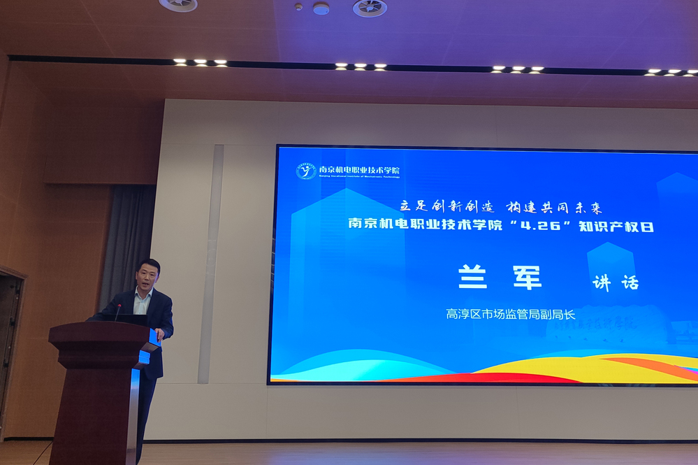 2024年4月26日下午,星空网页版成功举办“立足创新创造,构建共同未来”的“4•26知识产权日”主场活动。南京市高淳区市场监管局副局长兰军、高淳高新区管理办公室副主任韩一鸣、南京理工大学知识产权学院院长助理锁福涛,星空网页版党委委员、副校长刁爱军、南京九致知识产权代理事务所战略研究部部长张杰等领导出席本次活动,学校系部及职能处室负责人、师生代表参加活动。本次活动由科研及校企合作处李木香处长主持。