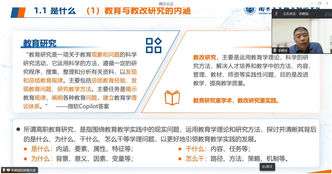 为进一步推进学校“两双工程”建设,提升我校教师的科研素养与实践创新能力,2024年9月25日晚上,学校诚邀南京工业职业技术大学本科职业教育研究院院长李建国为学校教师开展2024年“点亮科研灯塔 引领教育未来” 教师科研能力提升系列活动之专题讲座。