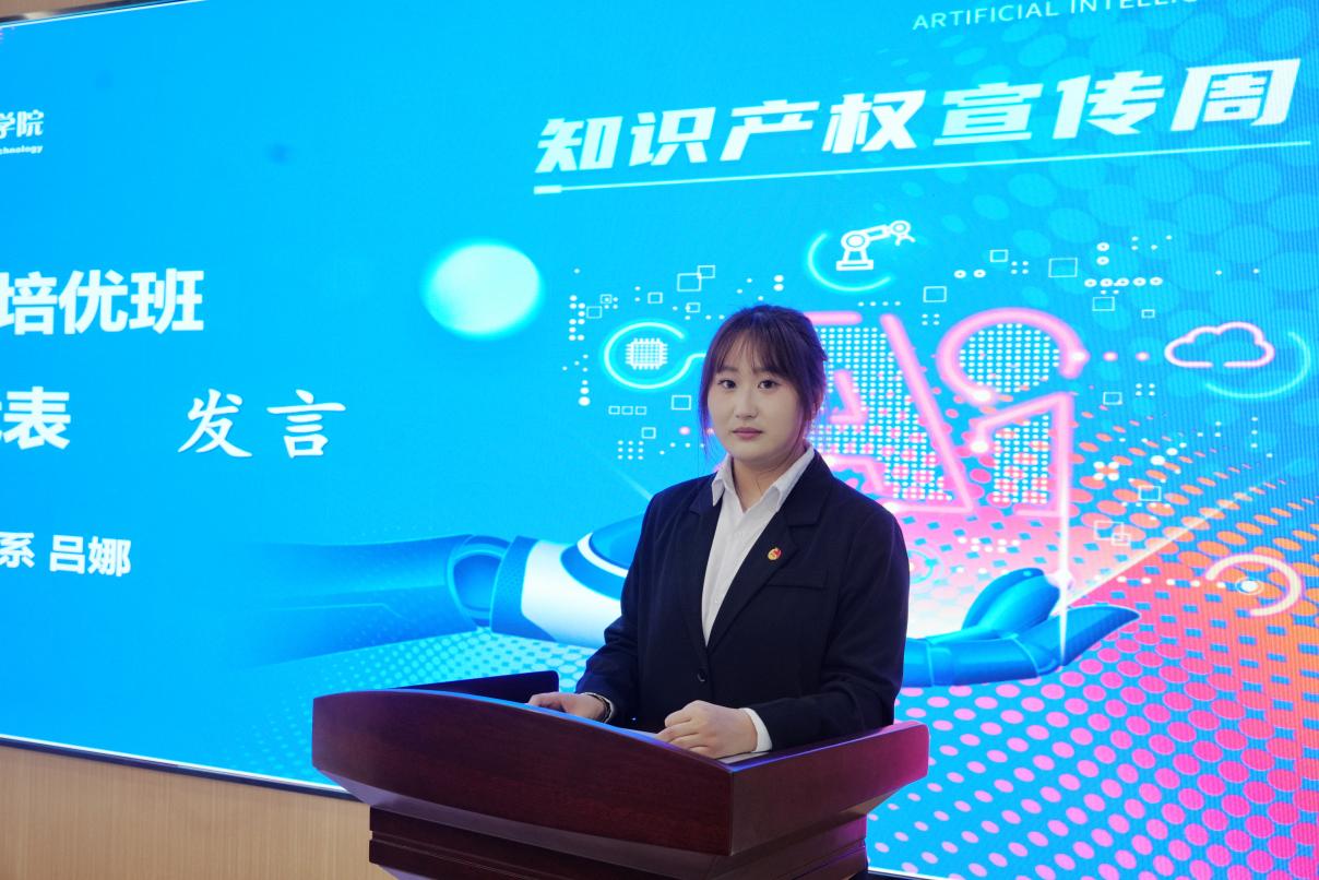 “知识产权培优班”开班仪式上,李木香为学校首期“知识产权培优班”学员代表颁发学员证书。信息工程系吕娜同学作为学员代表发言,希望通过“知识产权培优班”开启知识的宝库,探寻知识产权的奥秘,能够在专利申请和知识产权赛事等方面取得优秀的成绩。