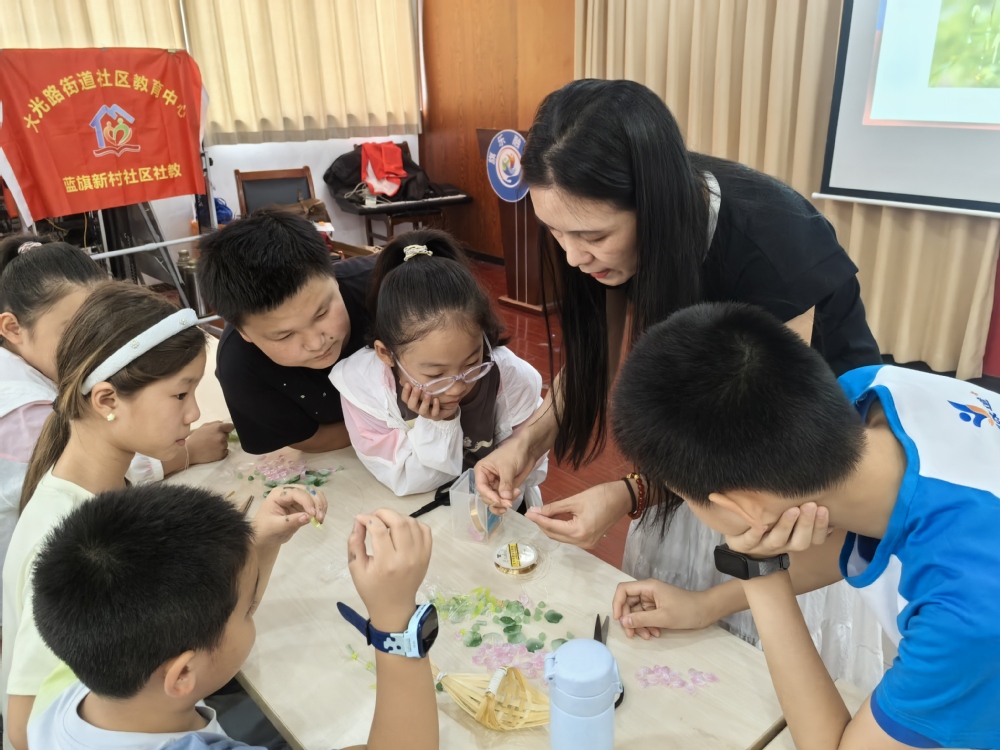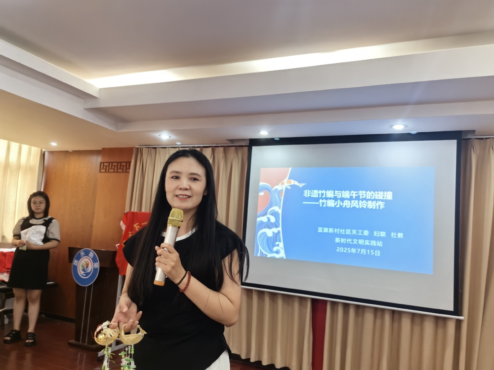 学校与南京机械工程学会、蓝旗新村社区联合开展“非遗竹编——竹编小舟风铃制作”活动