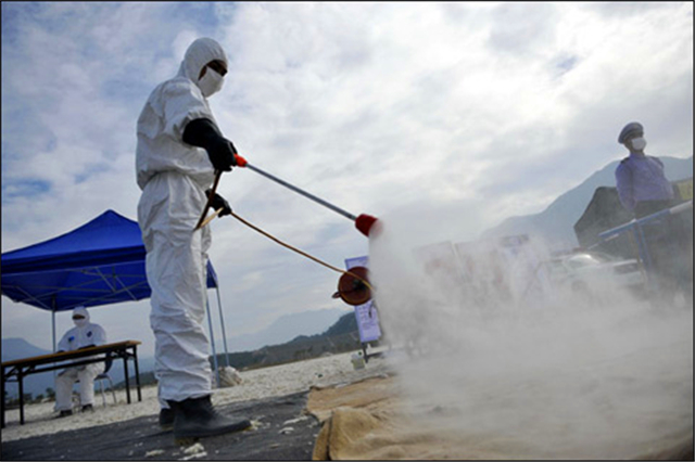 4)对有症状的家庭成员经常接触的地方和物品进行消毒。密切接触者用过的纸巾、口罩等垃圾,使用专用垃圾袋,清理前使用1000mg/L的含氯消毒液浇洒至完全湿透,扎紧垃圾袋口,作用30min。就医交通工具(私家车等),建议使用含氯消毒剂或过氧乙酸消毒剂,对所有被呼吸道分泌物或体液污染的表面进行消毒。