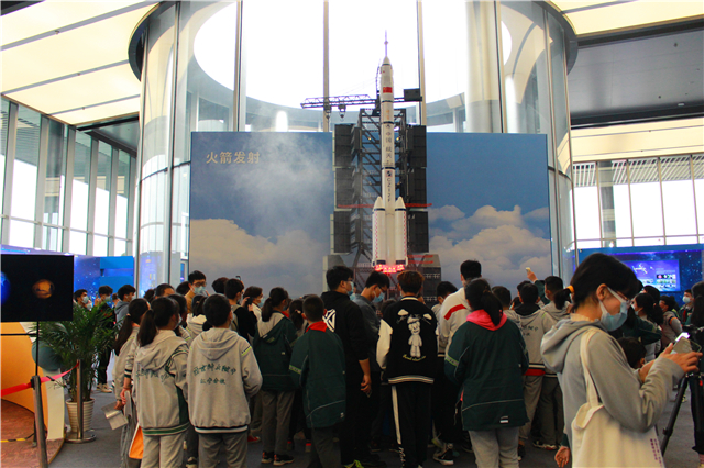4月27日下午,蓝岛创客空间组织我校双创教育试点班学生前往上秦淮国际文化交流中心观摩2021年中国航天日科普宣传周暨“航天放飞中国梦”科普展活动,见证中国航天事业的蓬勃发展。